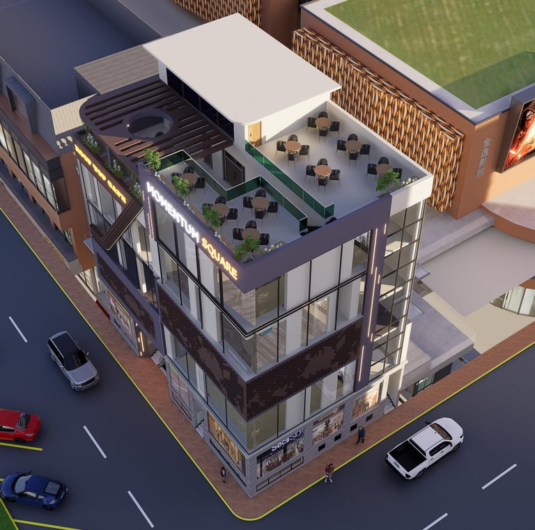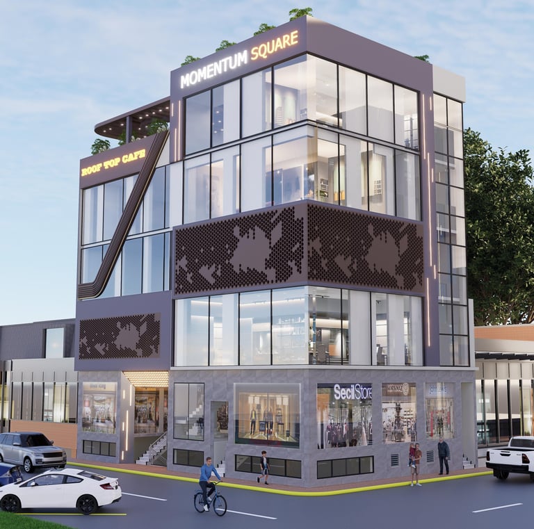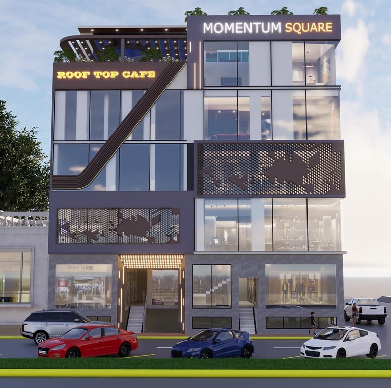Momentum Square is a modern commercial hub in Attock City, Pakistan, featuring a blend of shops, apartments, and offices designed to meet the needs of businesses and residents alike.